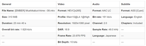 Torrent details for "Mushikaburi Hime (2022) (Season 1) [1080p] [HEVC WEBRip] (Biblio…" Log in to bookmark