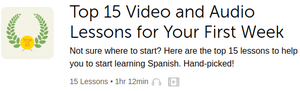 SOURCE: SpanishPod101❶ "Top 15 Video & Audio Lessons for Your First Week" [Absolute Beginner]