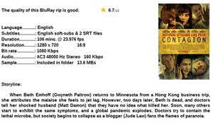 Torrent details for "Contagion (Thriller 2011) Matt Damon 720p BrRip" Log in to bookmark